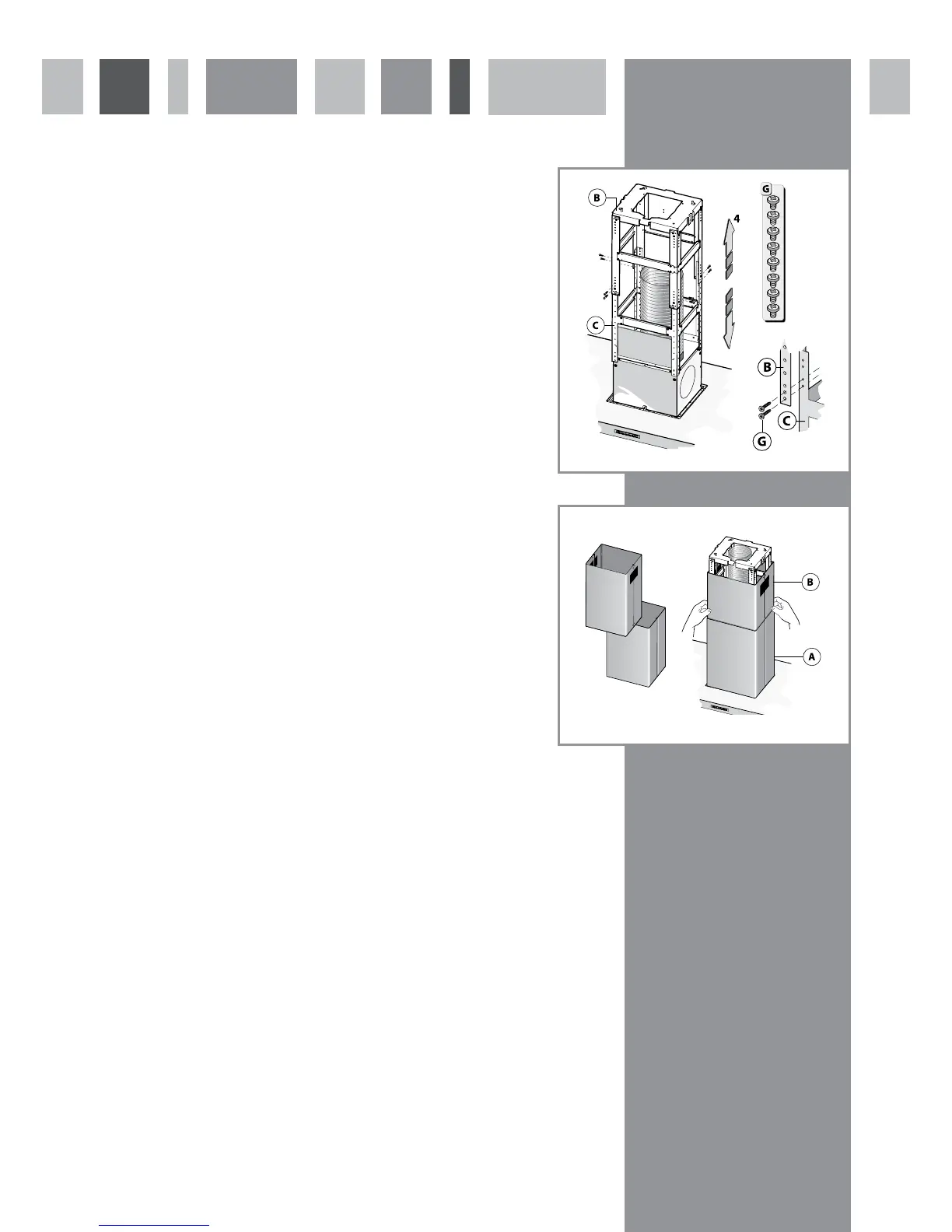 4. Assemble the upper (B) and lower (C) support sections at the desired