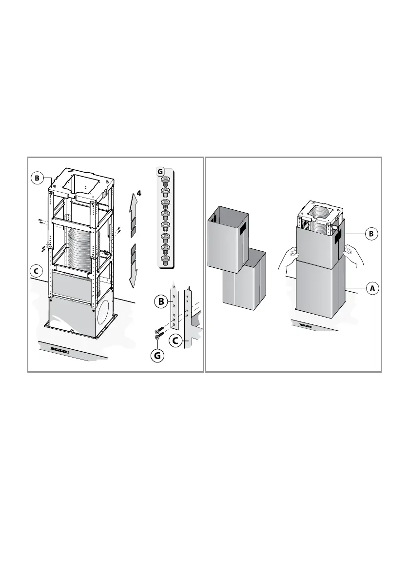fit the upper (B in Fig. 13) and lower (A in Fig. 13) chimney sections