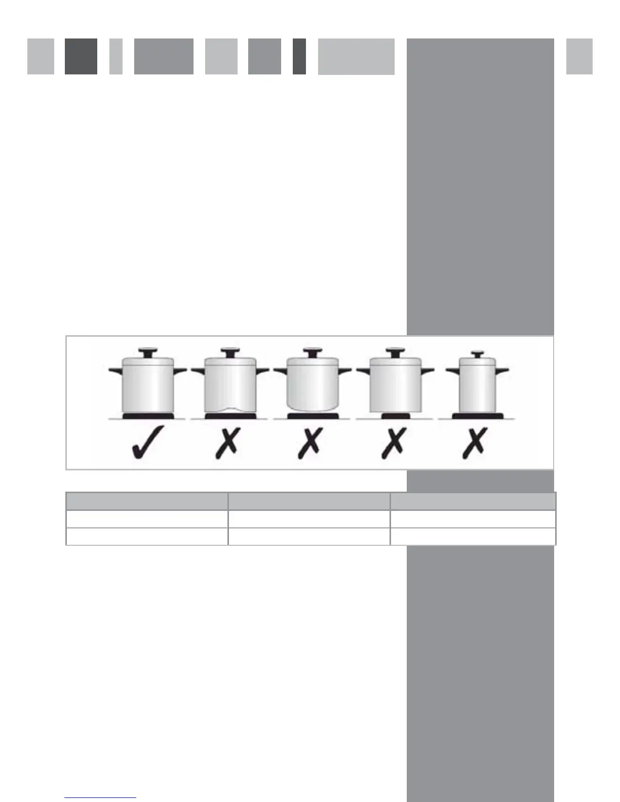 use pans with flat bottoms and choose an appropriate zone depending on the size of the pan. The most efficient use of the hob is