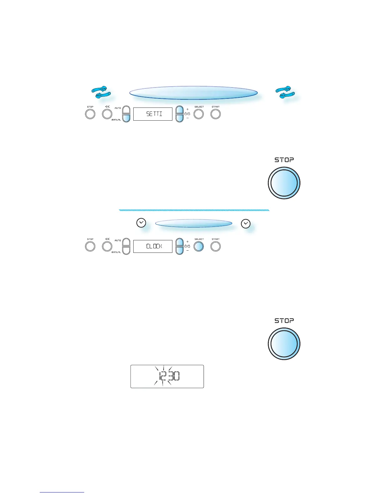 PRESS THE SELECT BUTTON . (The left right hand digits (hours) flicker).