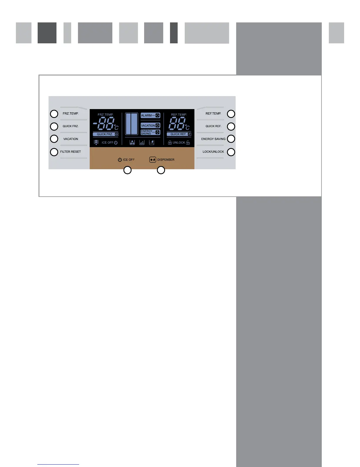 and the freezer temperature display will show 6. Touch the quick freeze function key again to cycle on the display through the