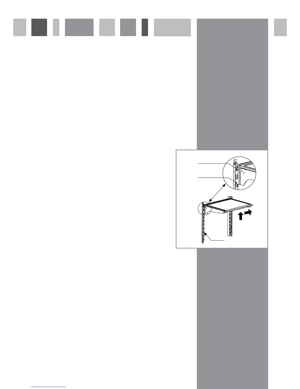 To move the shelf, tilt the shelf upwards and then unhook the shelf