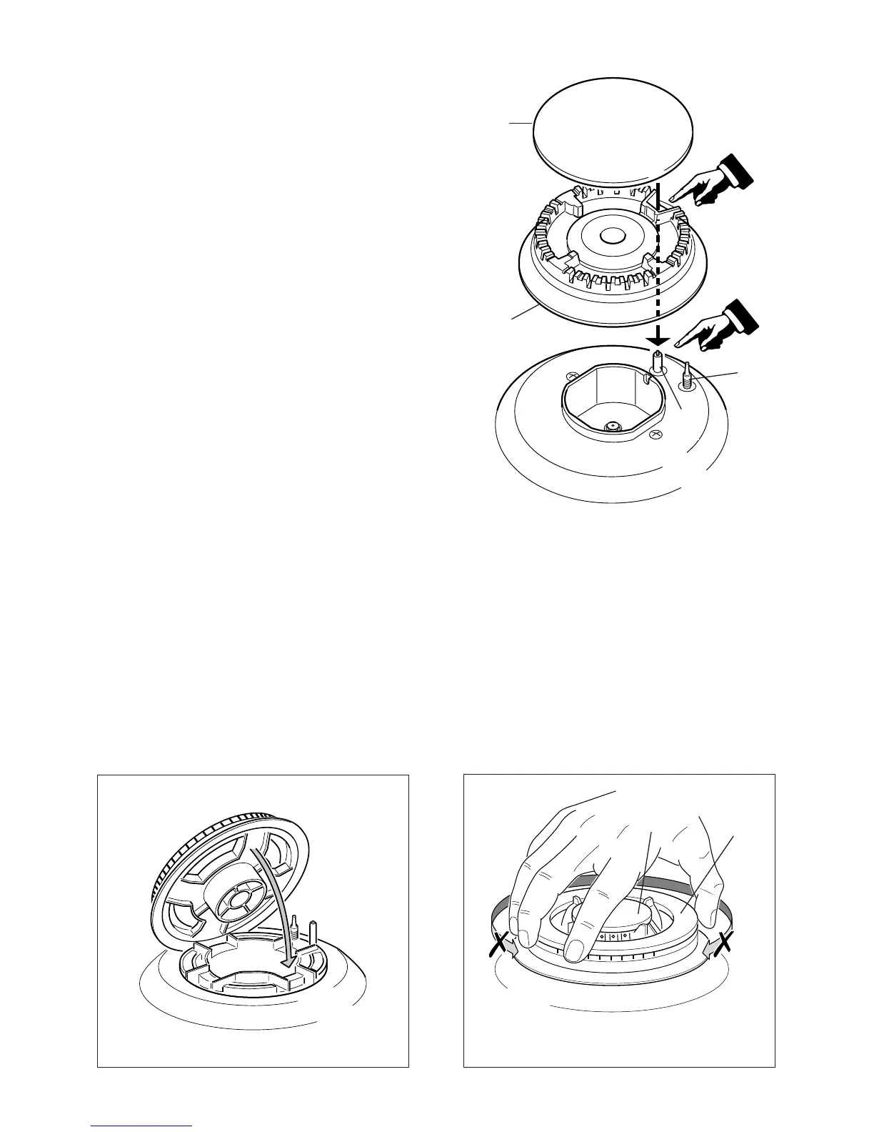 The triple ring burner must be correctly positioned (see figs. 26-27); the burner rib