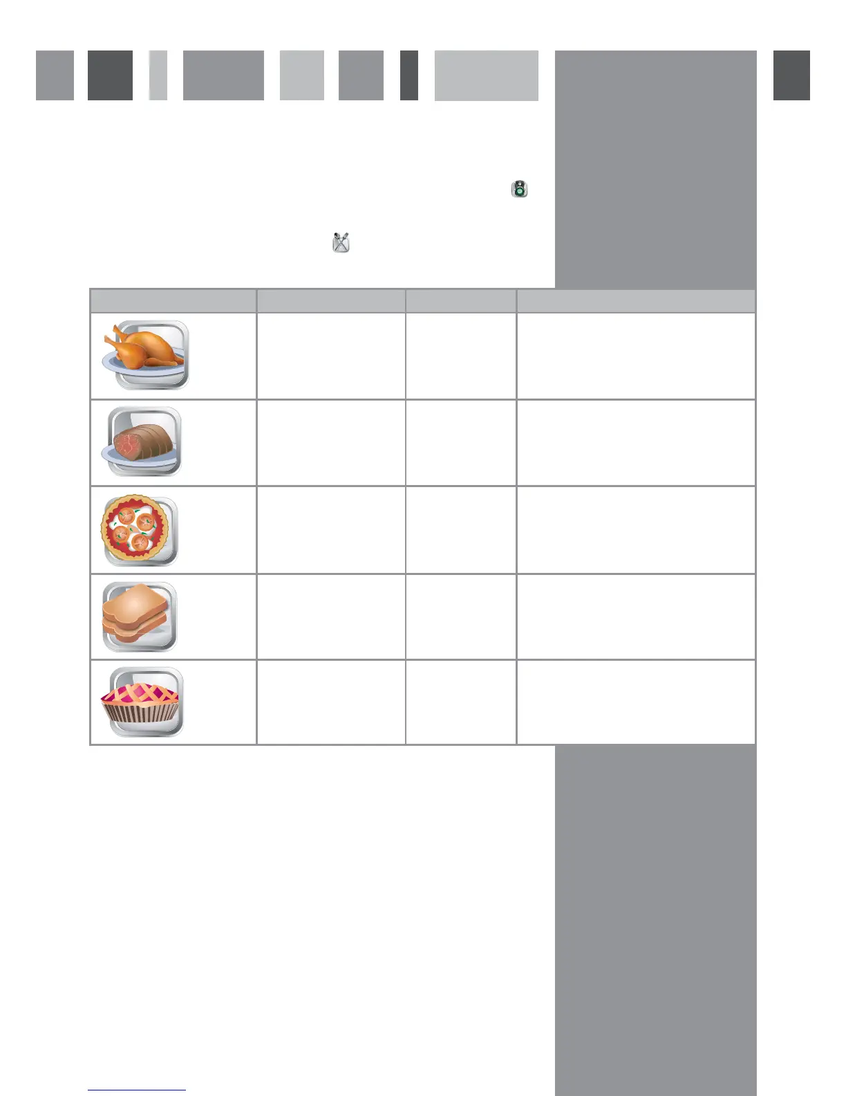 The auto cooking programmes are designed to make cooking even easier. Just touch the icon of the food to be
