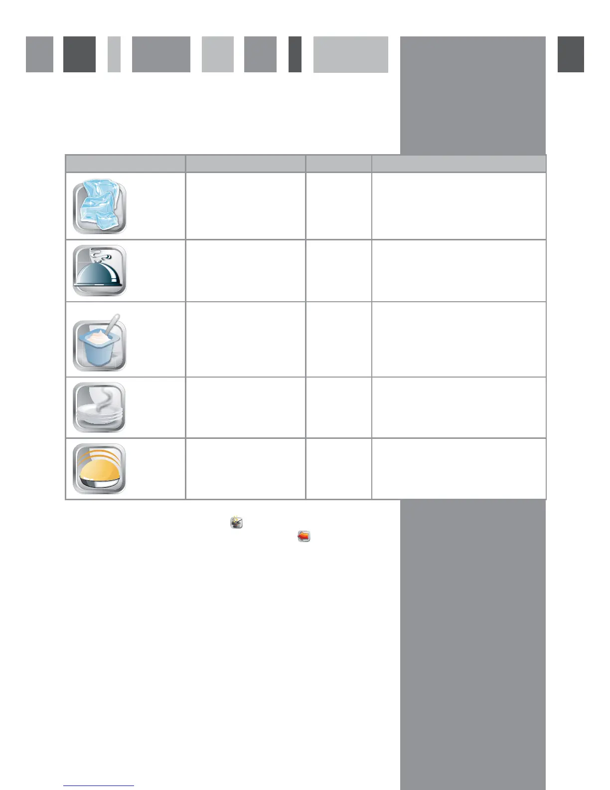 Icon Programme Temperature Preset cooking time