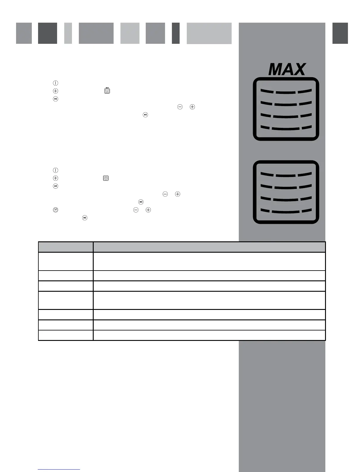 1000 W / 900 W Quick reheating of beverages, water and dishes containing a large quantity of liquid.