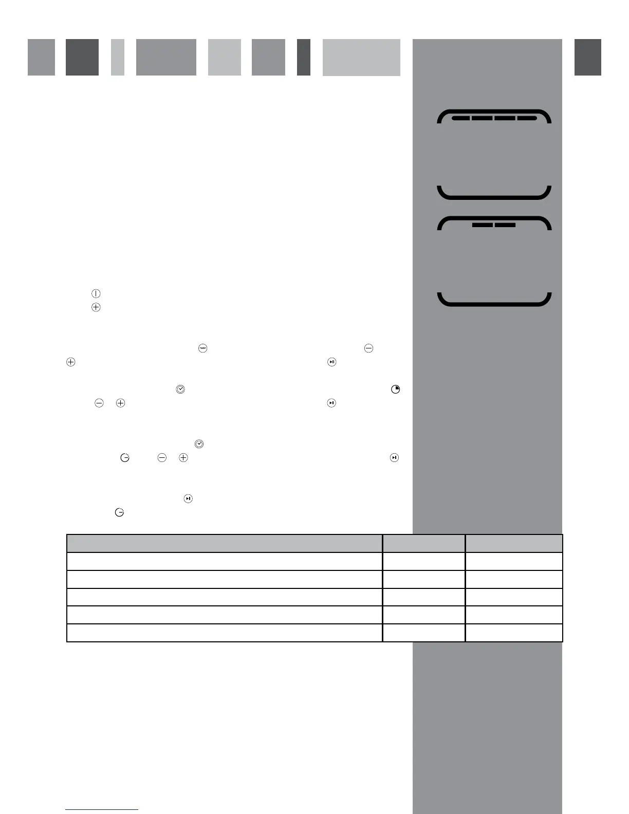 food to be cooked. Each grill programme has three different power levels, 3 for full