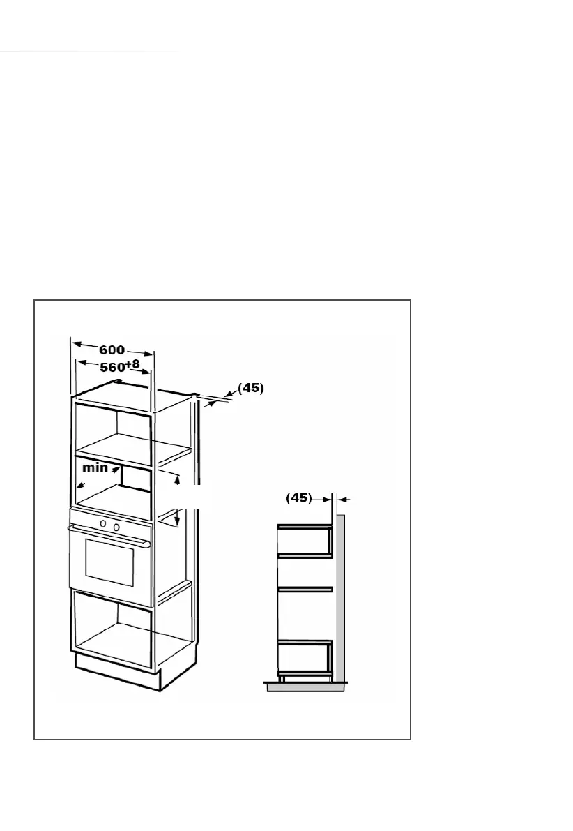 The appliance should be installed in a tall unit (open at the rear) with