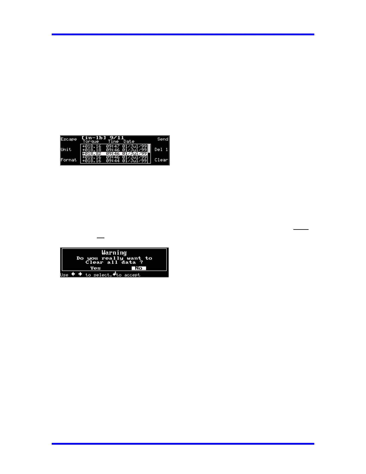 is positioned. Use the Up (↑) or Down (↓) Cursor to select data.