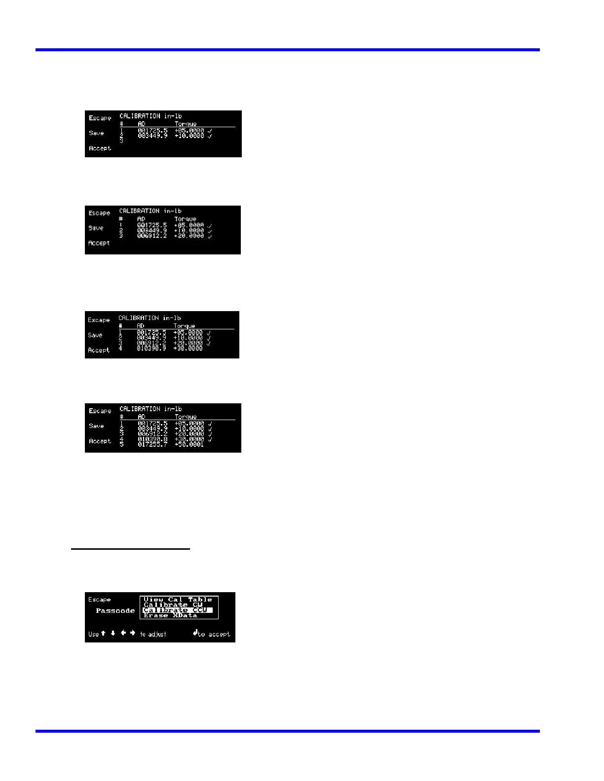 The display will show: Saving …. then show the Calibration table.