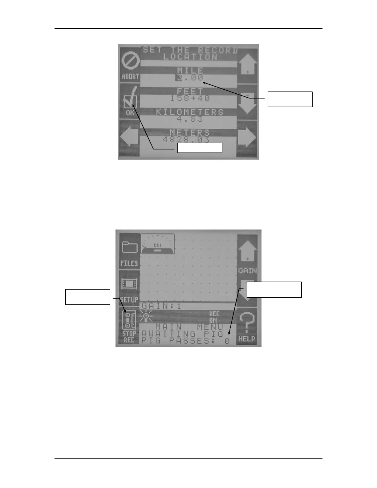 labeled “OK”. If location ID is not active, the unit will immediately begin watching for a pig passage.