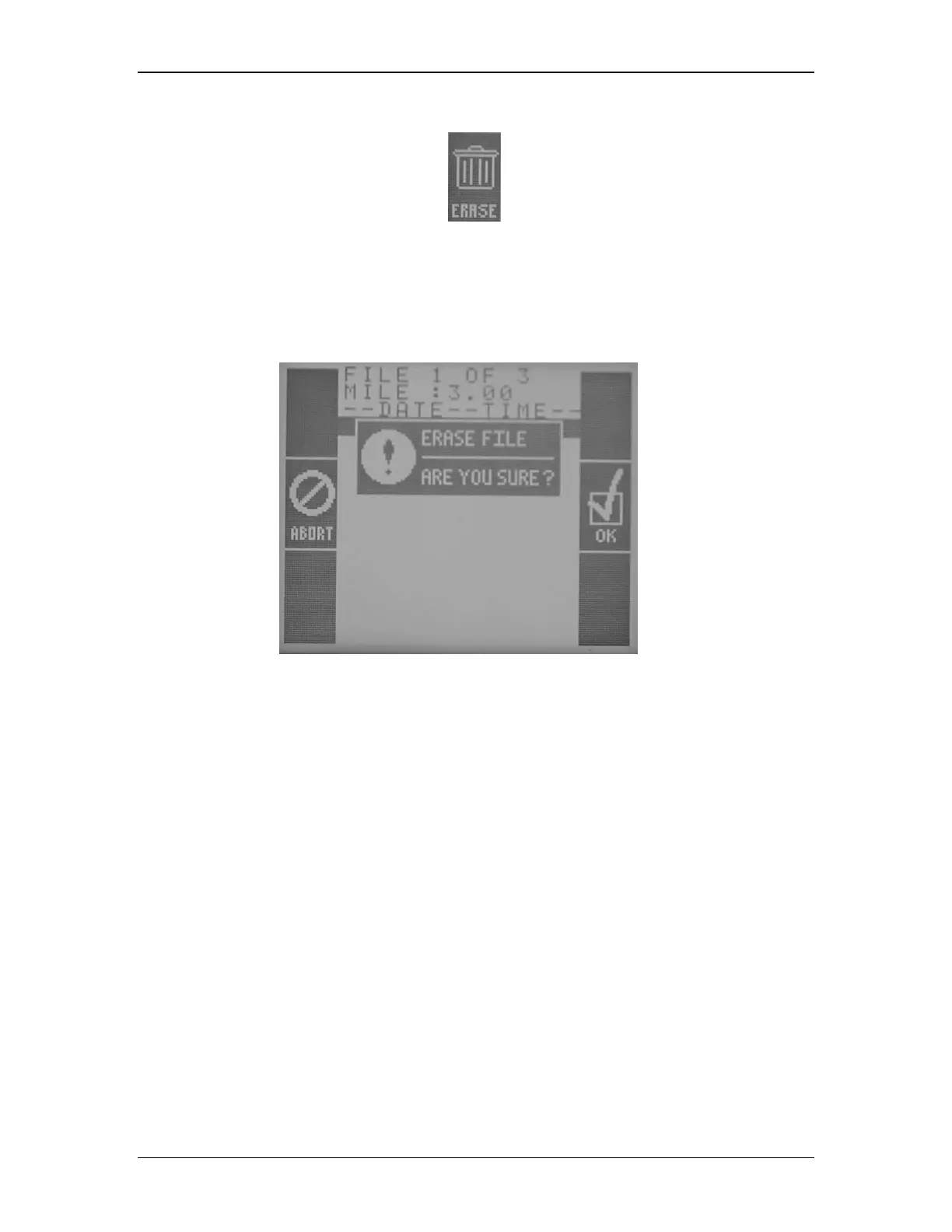 To cancel the erase operation and return to the file list, press the ABORT button. If the OK button