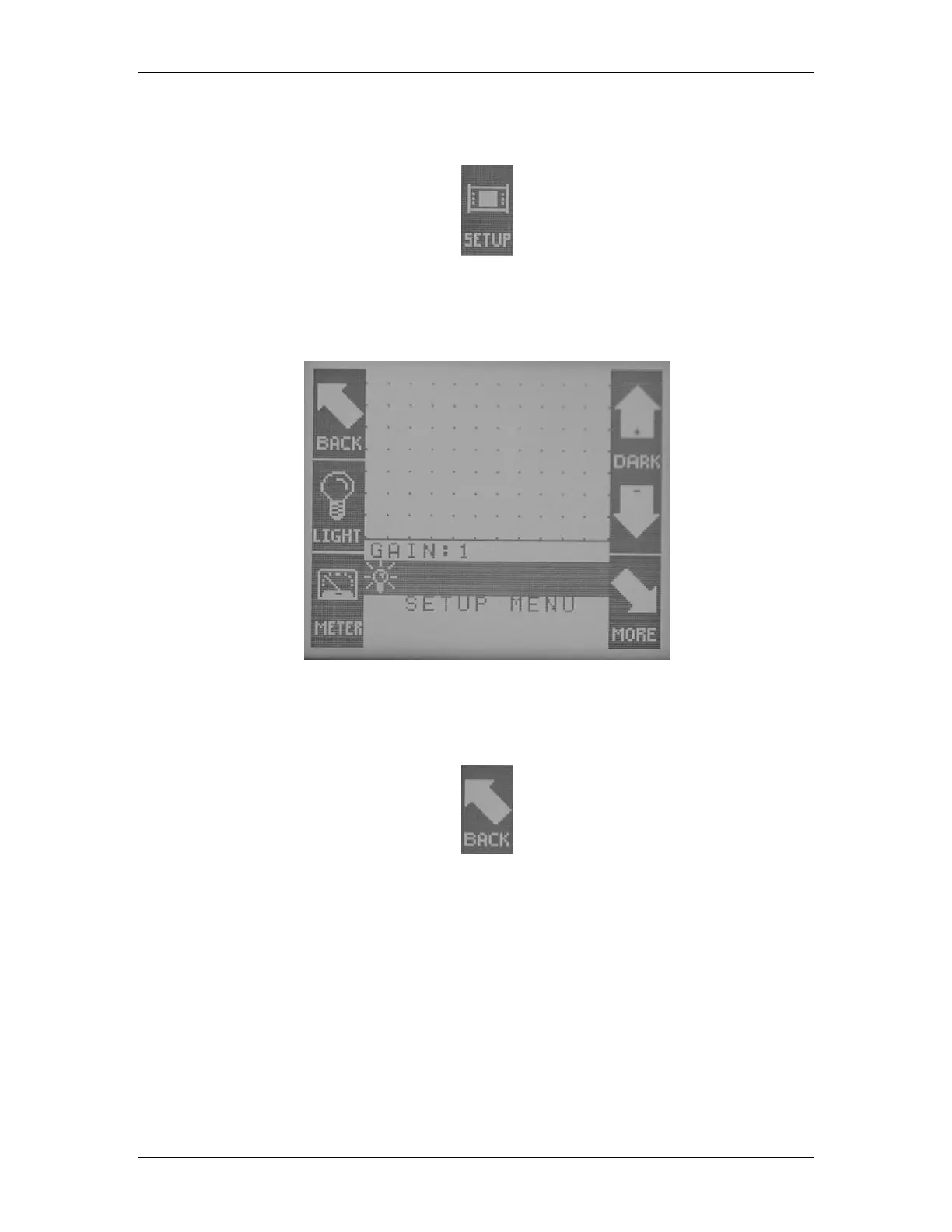 The Back button (icon shown in Figure 39) allows the operator to “back up” one menu level at a time to