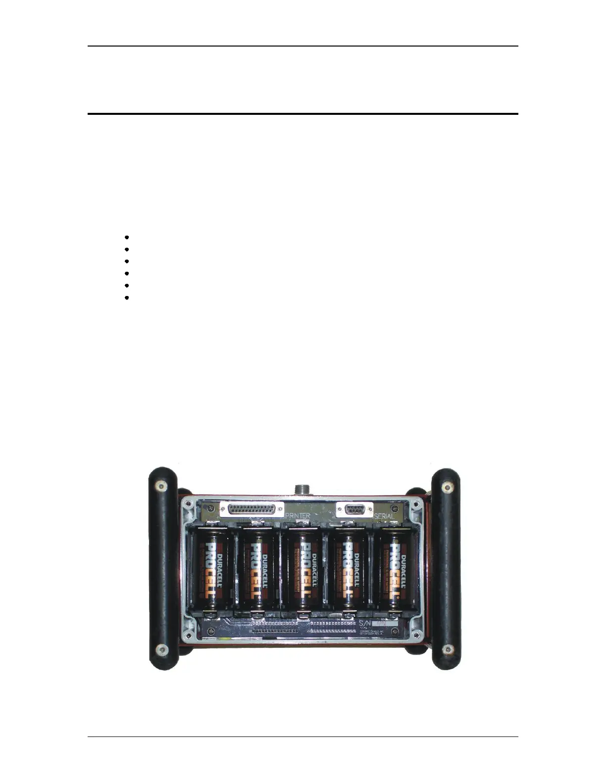 five D-Cell battery holders should be visible as shown below in Figure 1. Install 5 new D-Cell batteries
