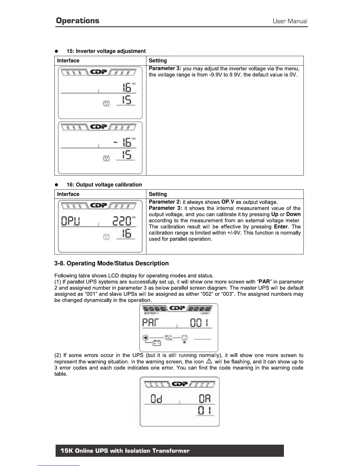 CDP UPO22 - 3-8. Operating Mode;Status Description