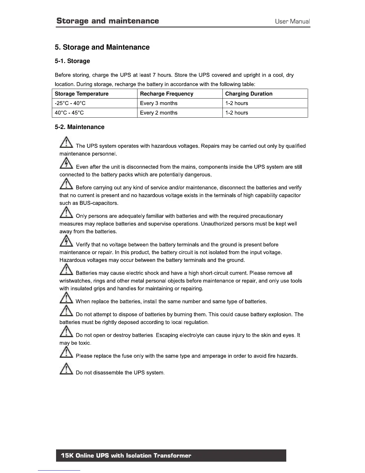 CDP UPO22 - 5. Storage and Maintenance; 5-1. Storage; 5-2. Maintenance