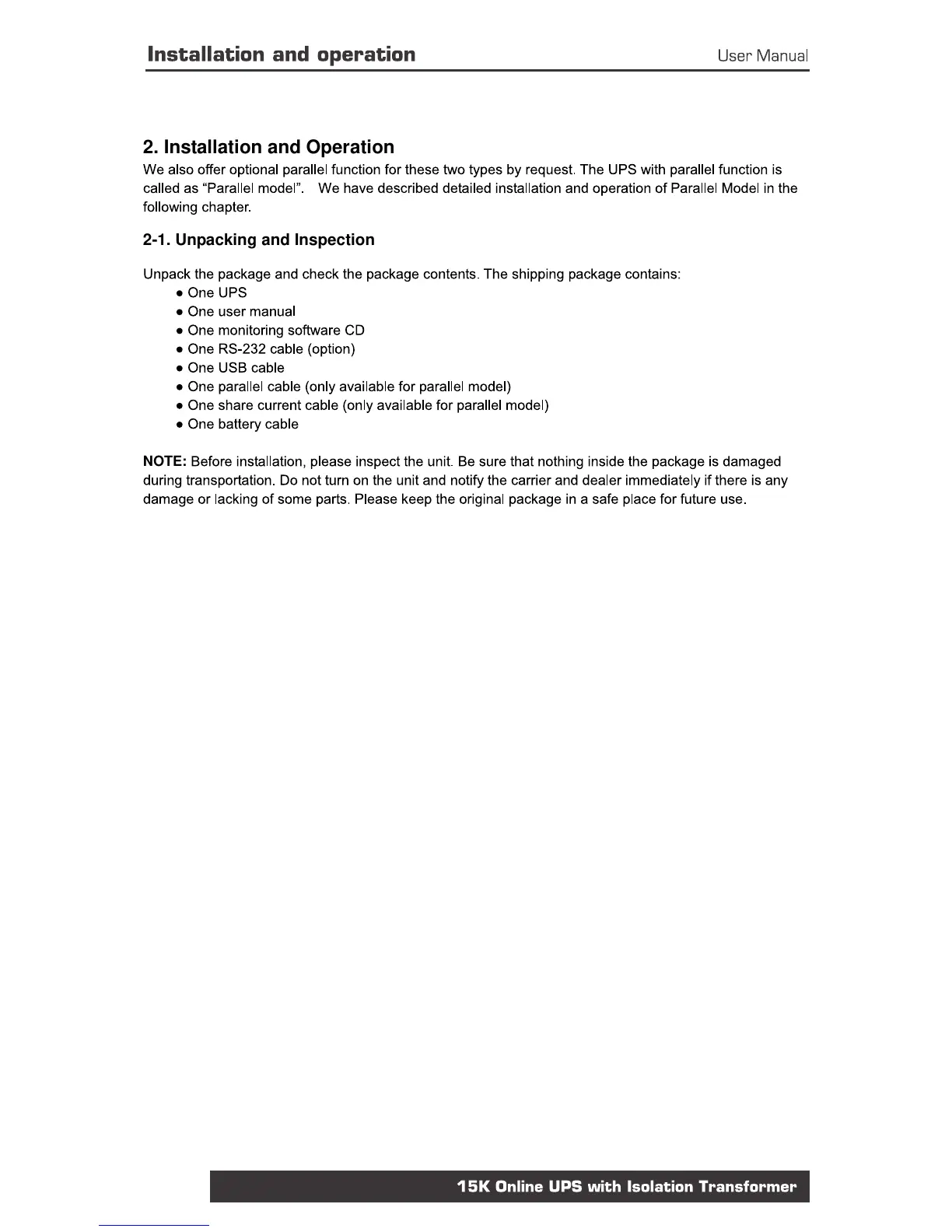 CDP UPO22 - 2. Installation and Operation; 2-1. Unpacking and Inspection