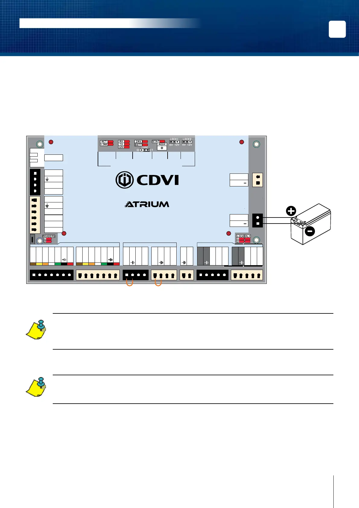 Wire a 12Vdc (either 4.5Ah or 7Ah) gel type battery and then connect it to the BATT “+” and “-” terminals with