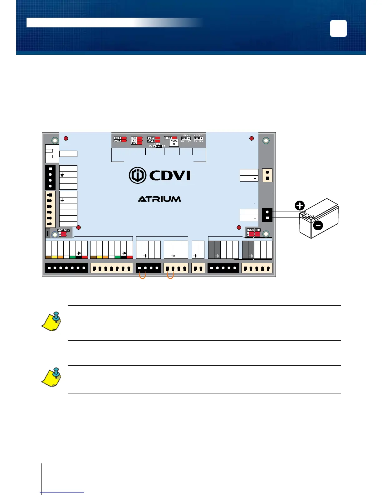 Wire a 12Vdc (either 4.5Ah or 7Ah) gel type battery and then connect it to the BATT “+” and “-” terminals with
