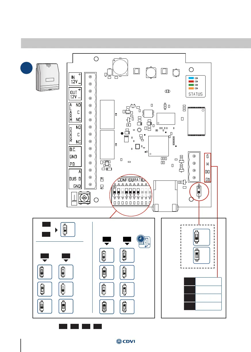 CDVI BIOSYS 1 - Configuration and Parameters; DIP Switch Settings; Door Timeout Configuration; Wiegand Data Format Selection