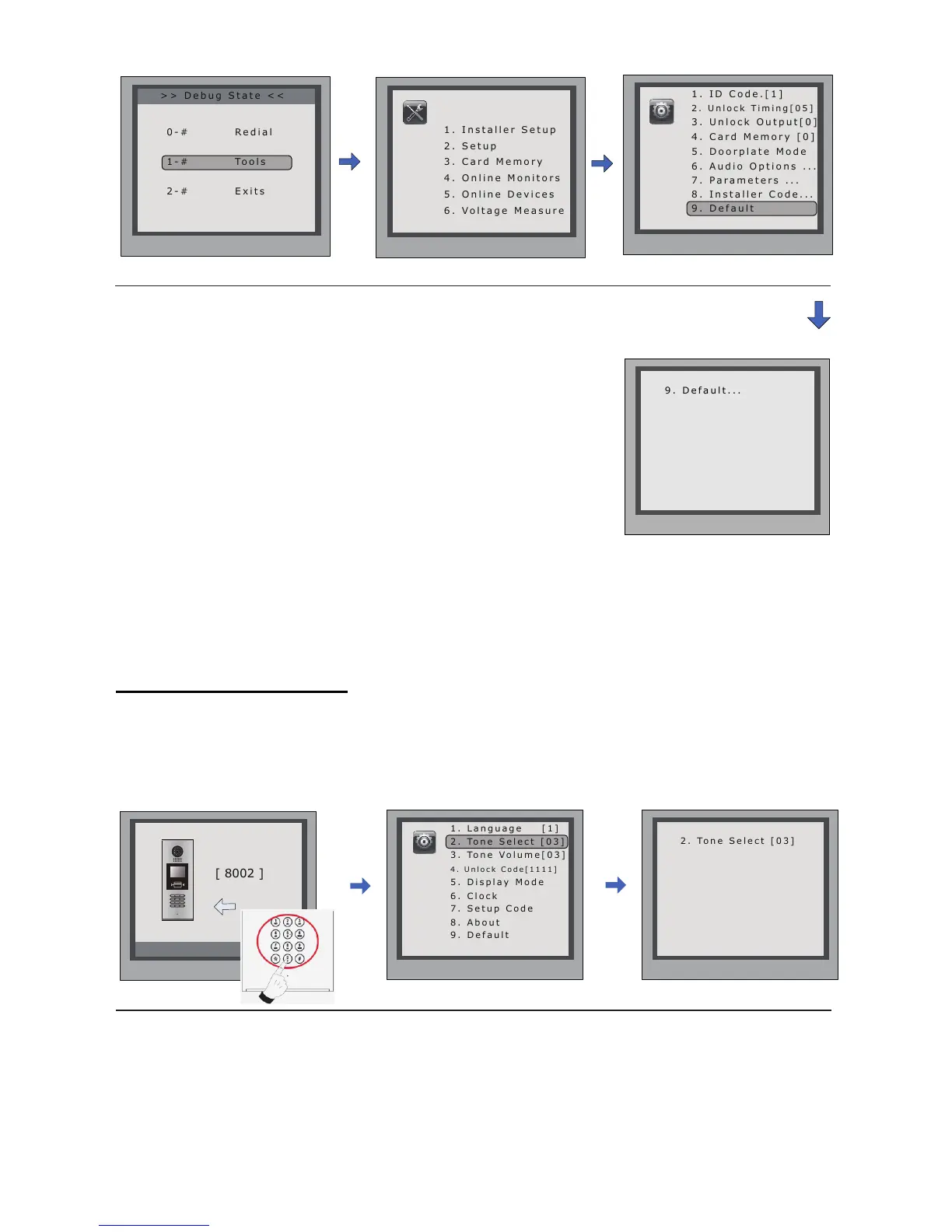 Thereare12differentringtones,IfdoorstationrunsasDebugState,youcanpress[1#]-->
