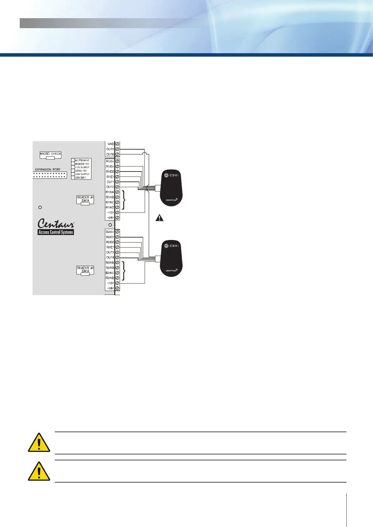 dierent voltage may damage the reader or keypad and invalidate the 2-Door Controller warranty.