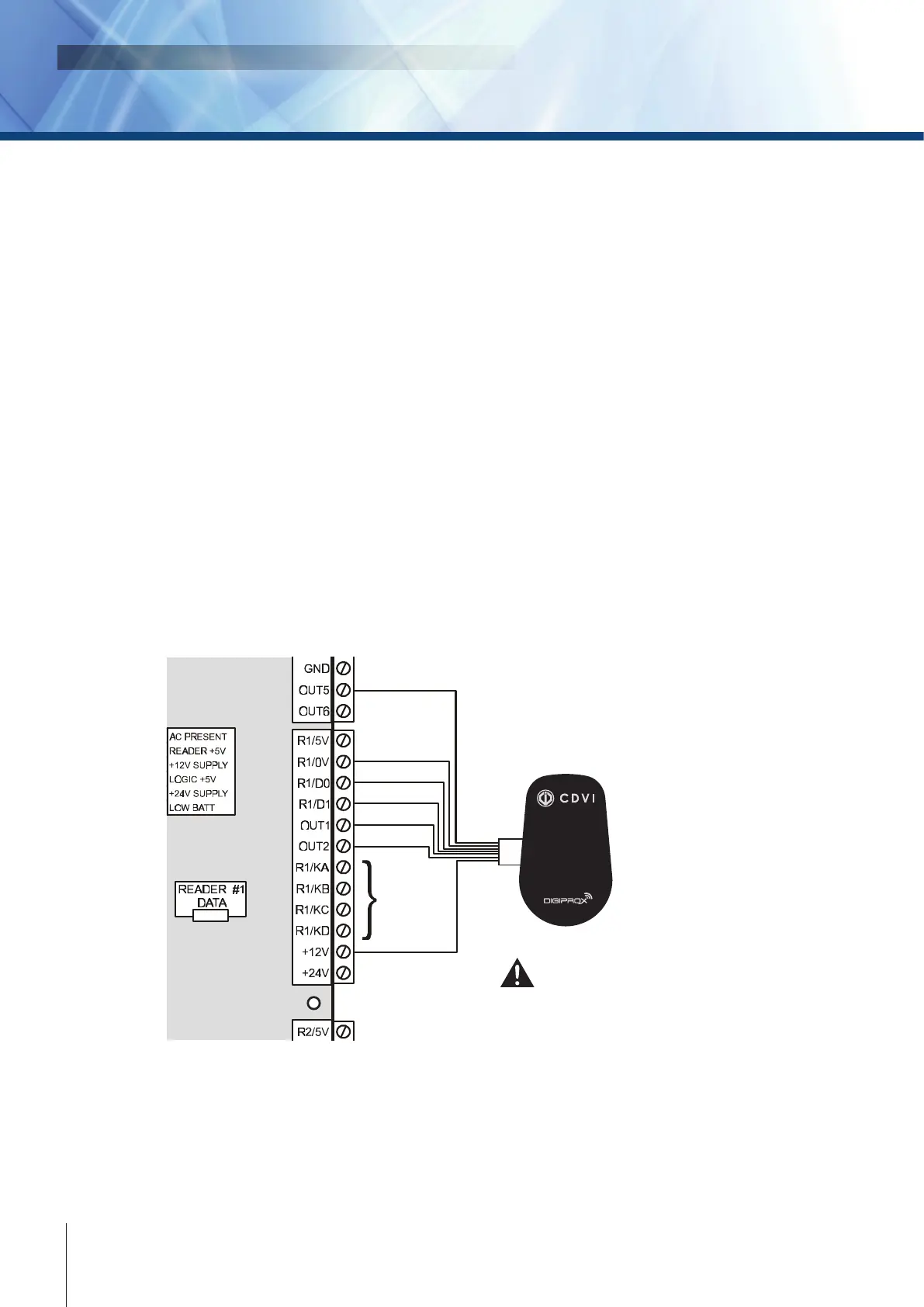 Most readers and keypads have built-in buzzers and LEDs. These should be connected to controller’s