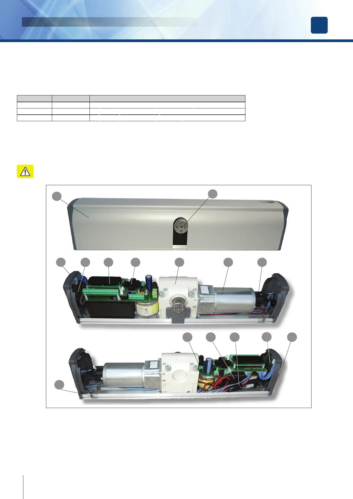 1 - Anodized aluminium cover 8 - Motoriductor
