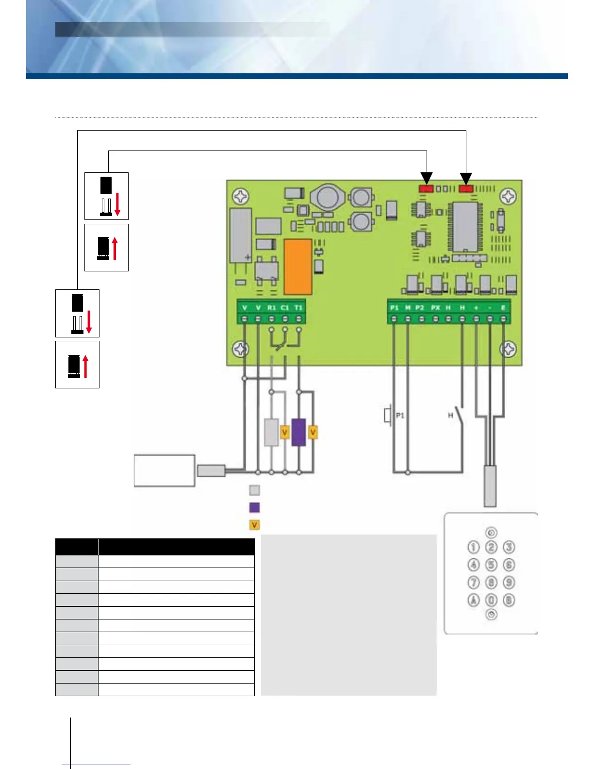 Ingång för extern öppnaknapp, relä 1