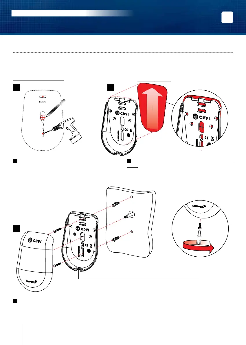 Placez les chevilles dans les trous, connectez les ls aux borniers (voir schéma de câblage page 5), puis xez le