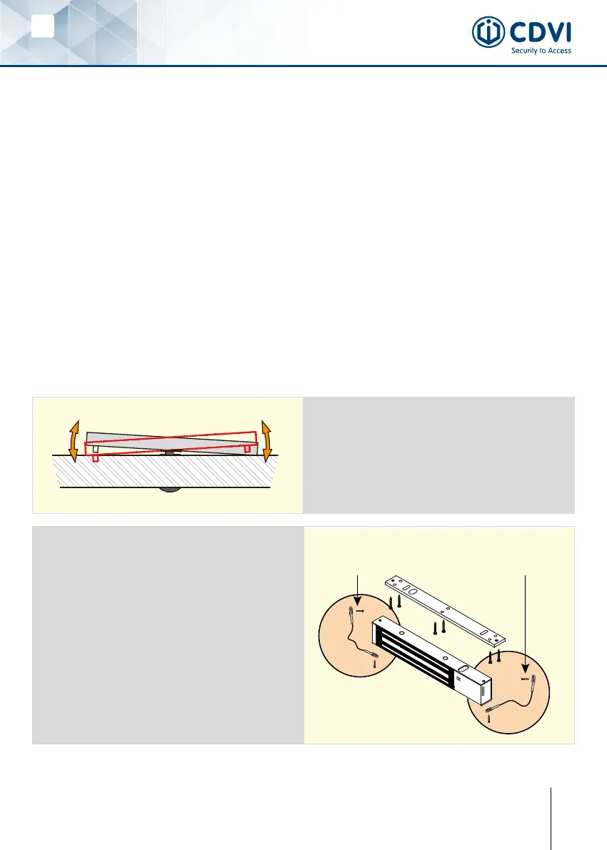 - Kontroller, at dørrammen, der understøtter eller holder magnetlåsen og ankerpladen med tilbehør, er robust