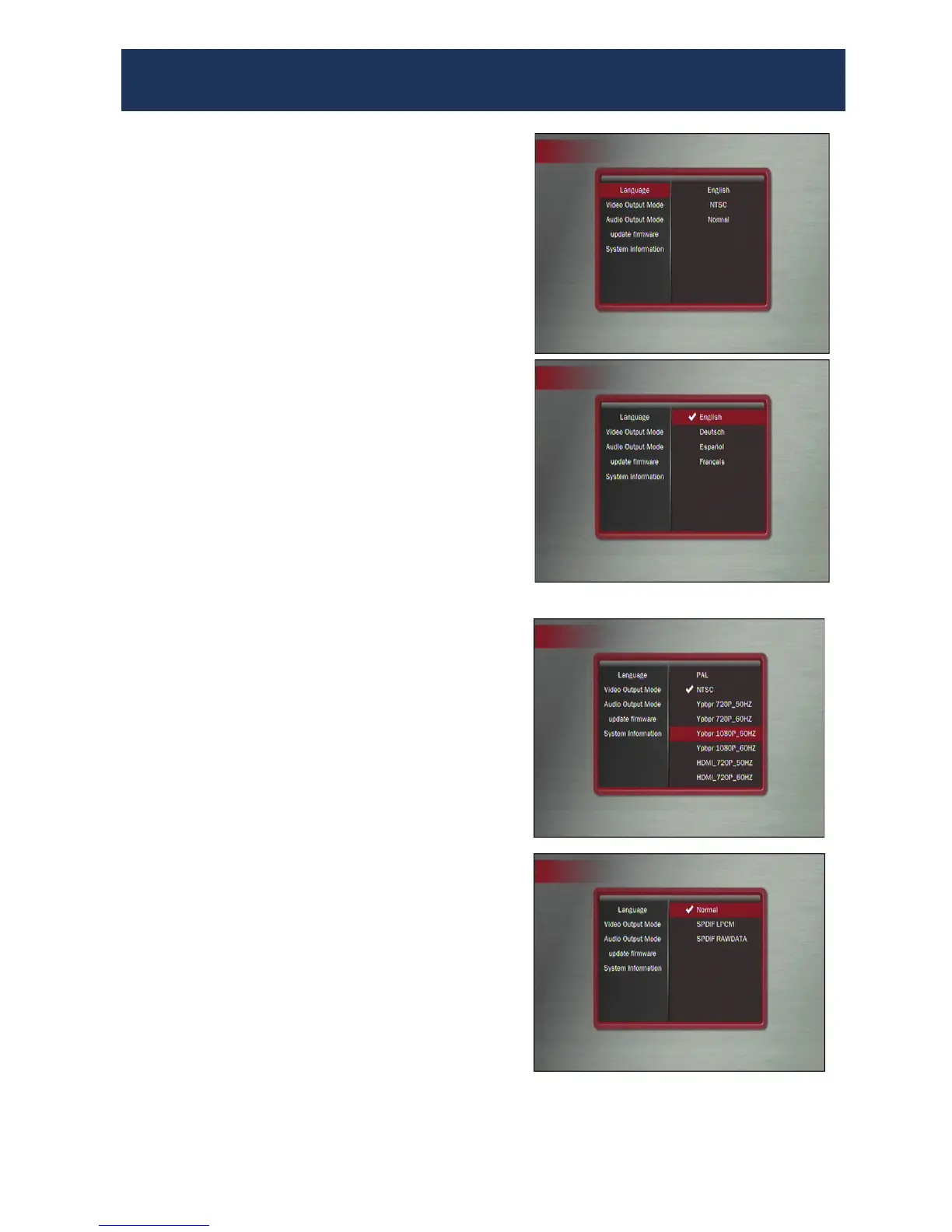 • Audio Output Mode: Normal, SPDIF