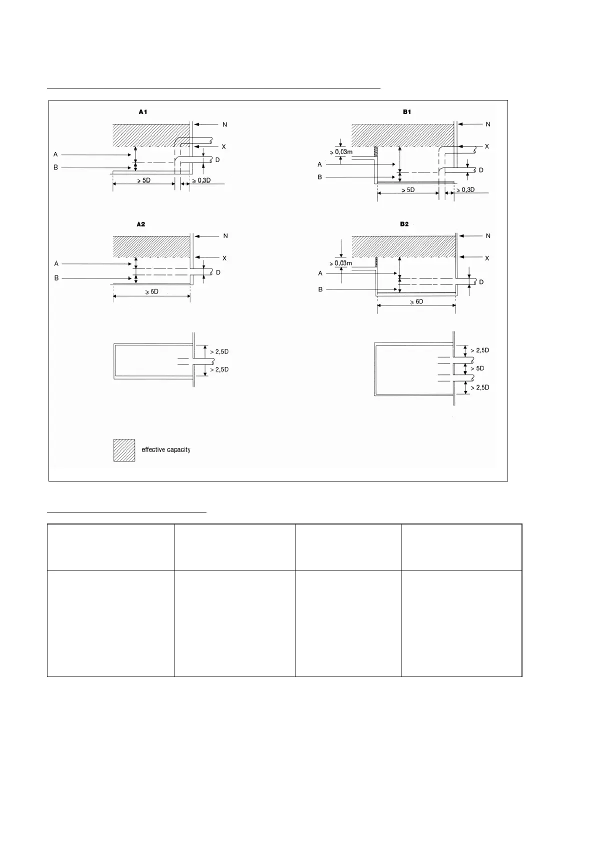 Table 13: Suction pipe inlet clearances