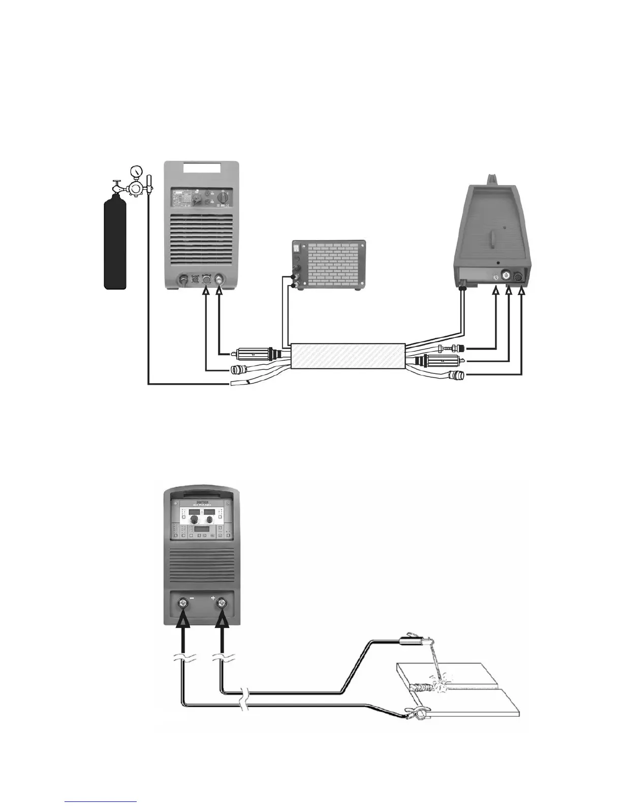 • interconnection cable on wire-feeder side: pass the tubes inside