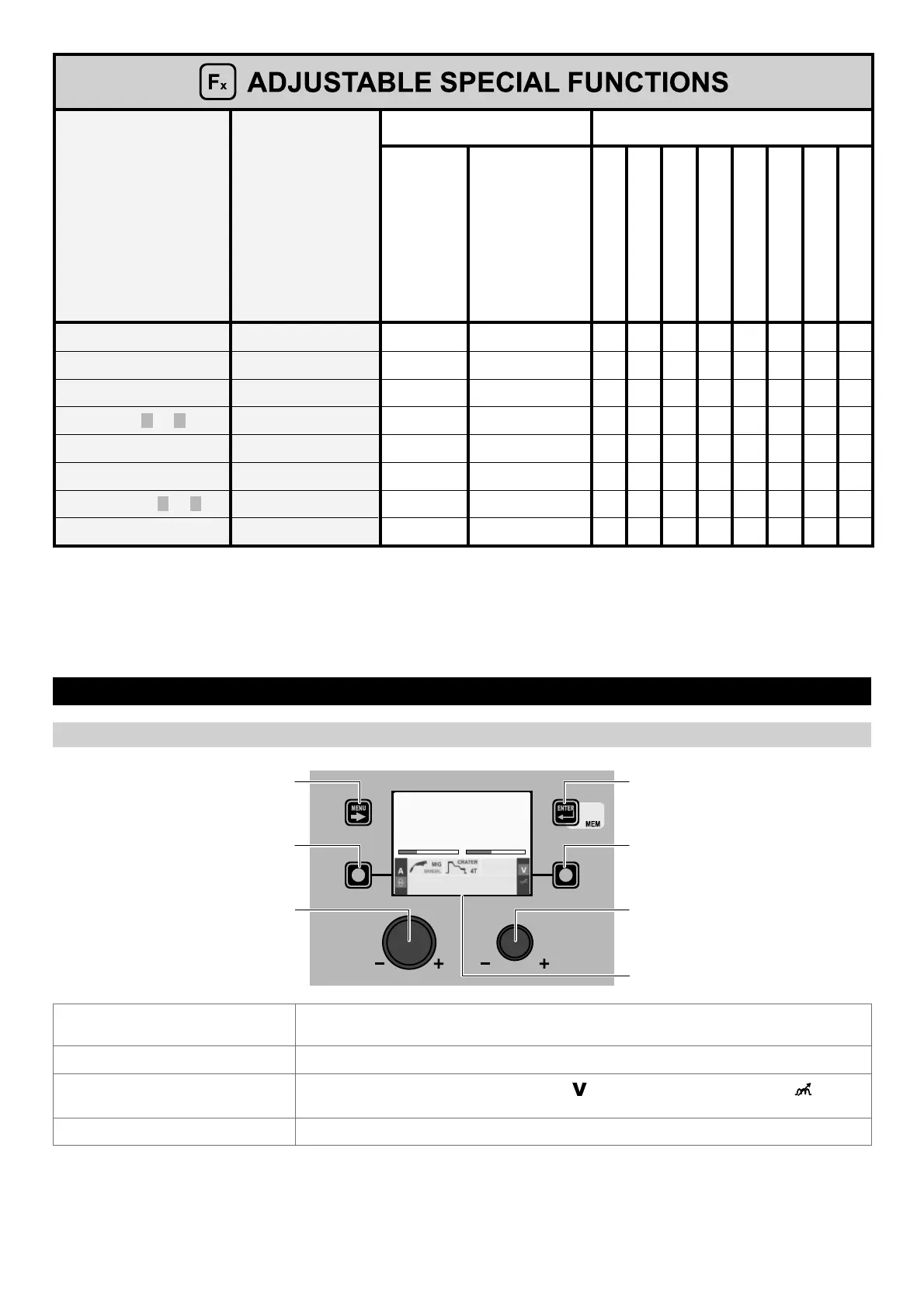 • It is possible to access editing of the SPECIAL FUNCTIONS (Fx) during welding.