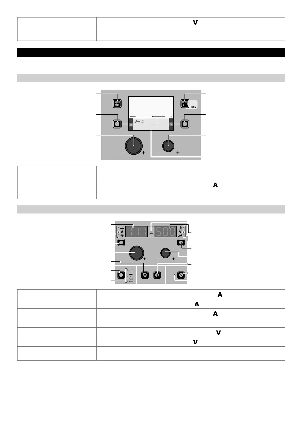 When welding takes place the fields in the displays show the same values as those included for pre-setting with the difference