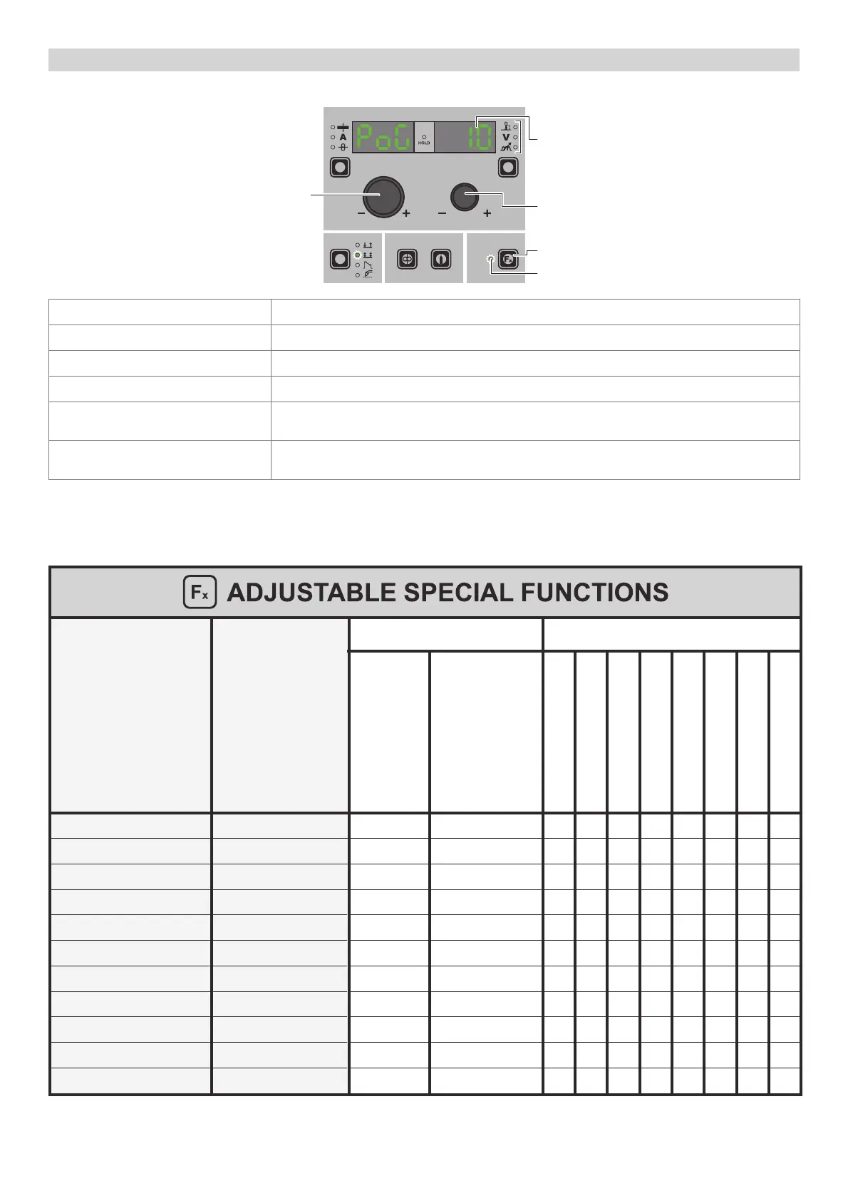 The SPECIAL FUNCTIONS (Fx) related to the MIG-MAG synergic, MIG pulsed, MIG double pulsed, Vision.PIPE, Vision.COLD,