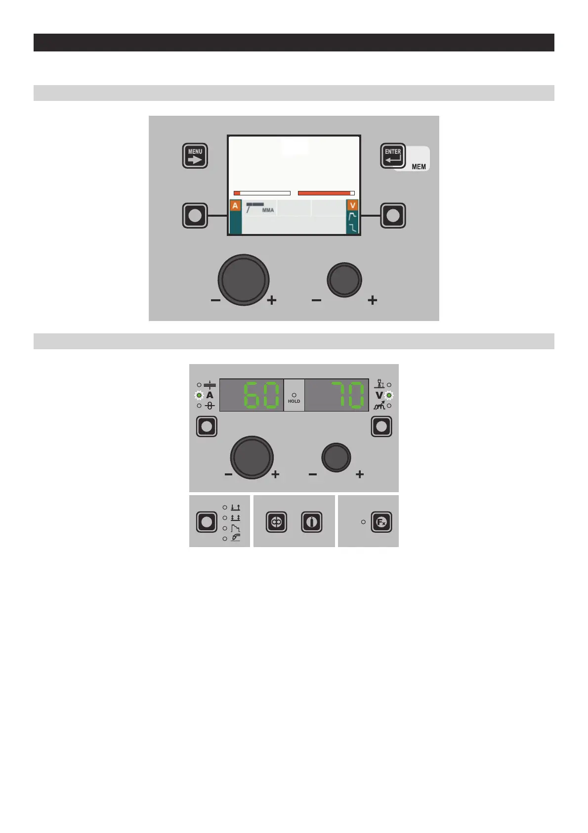 When welding takes place the fields in the displays show the same values as those included for pre-setting with the difference