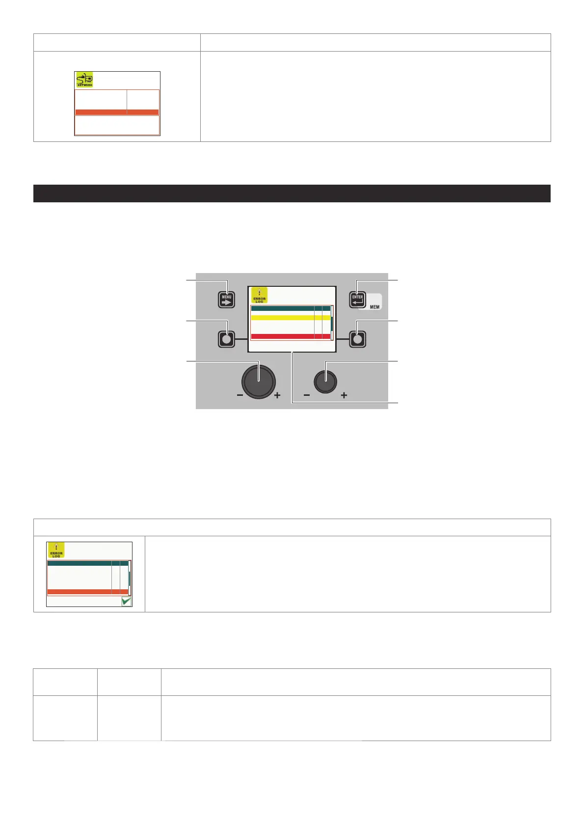 CREEN ONLY in the event of a fault and NOT in the ERROR LOG Menu.