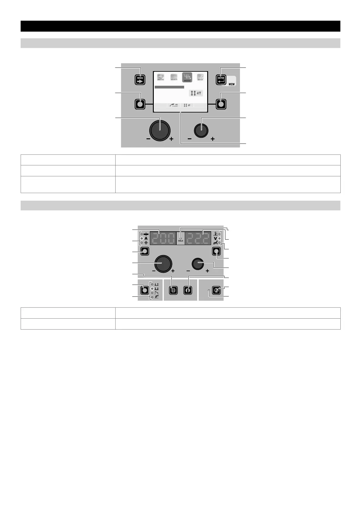 WELDING MODE SELECTION KEY Scrolls the various welding modes available in succession.
