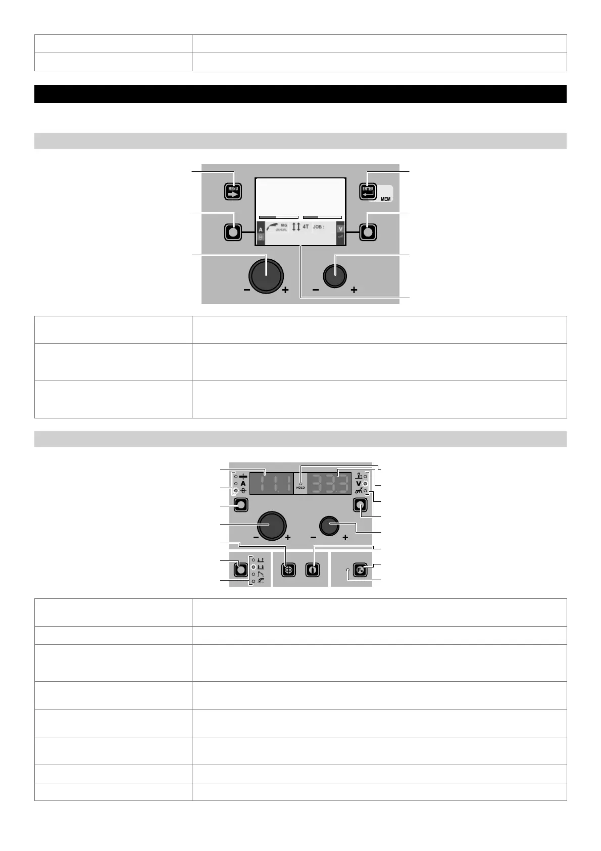 The LED unit indicates the welding mode saved in the JOB selected, which is coherent with