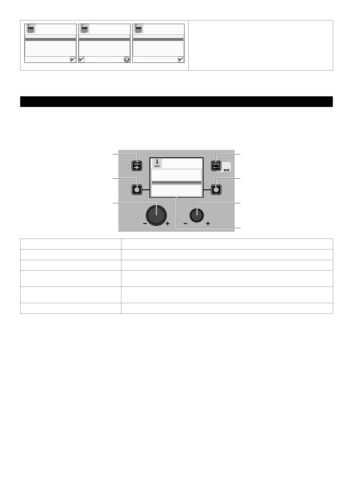 To exit the FACTORY RESET Menu and go back to the SETUP Menu:
