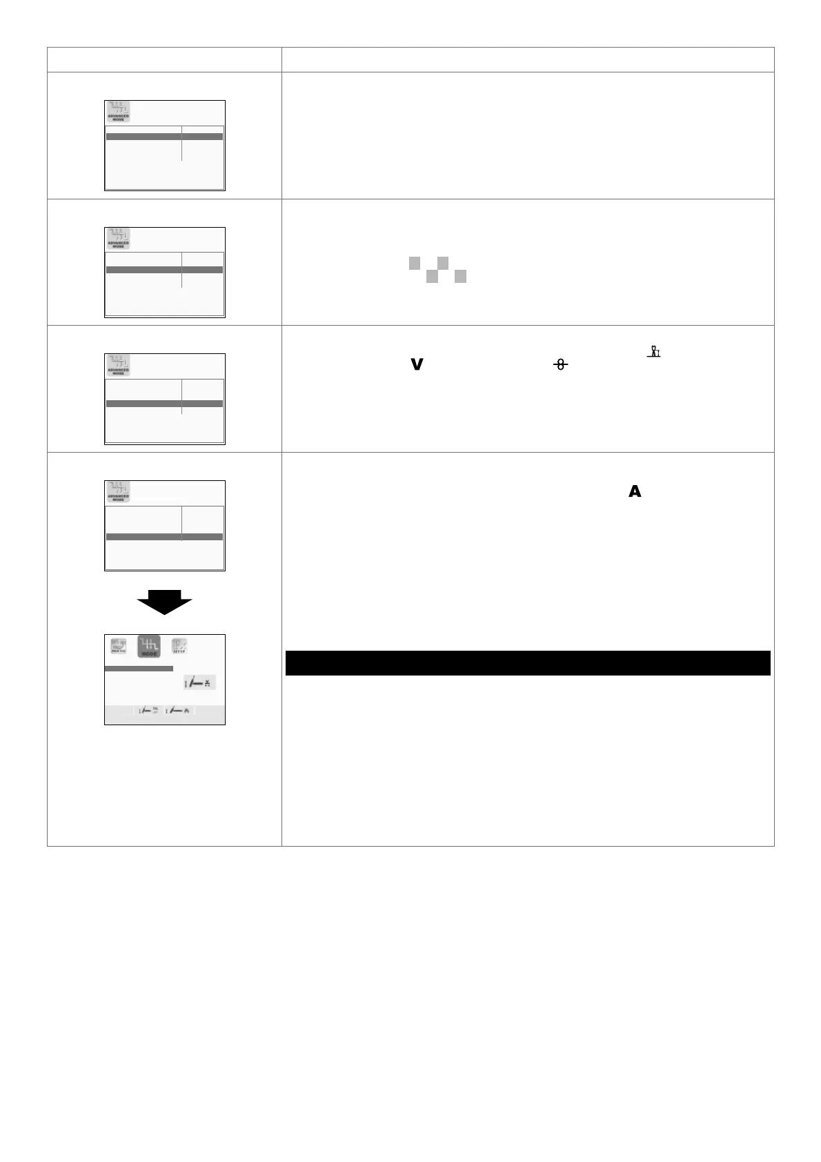 To exit the ADVANCED MODE Menu and go back to the ADVANCED SETUP Menu: