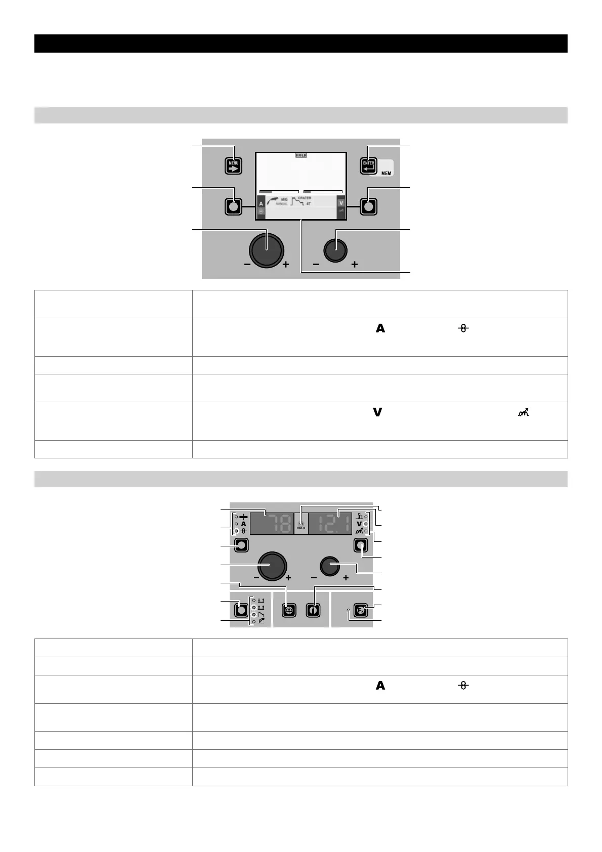 PARAMETER SELECTION LED - A The LED unit shows the welding parameter selected using the PARAMETER SELECTION K