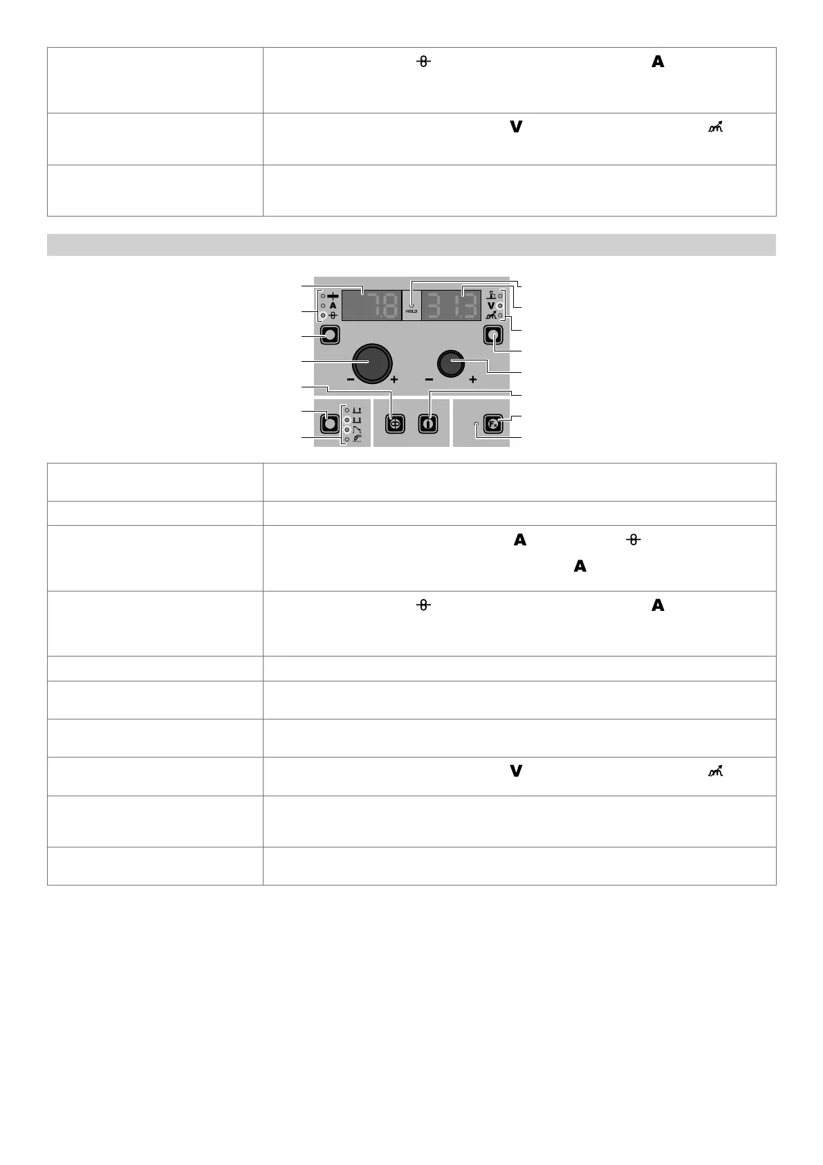 The LED unit indicates the welding parameter selected using the PARAMETER SELECTION K