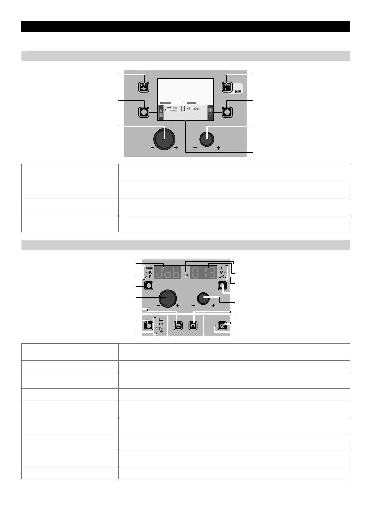 The LED unit indicates the welding mode saved in the JOB selected, which is coherent with