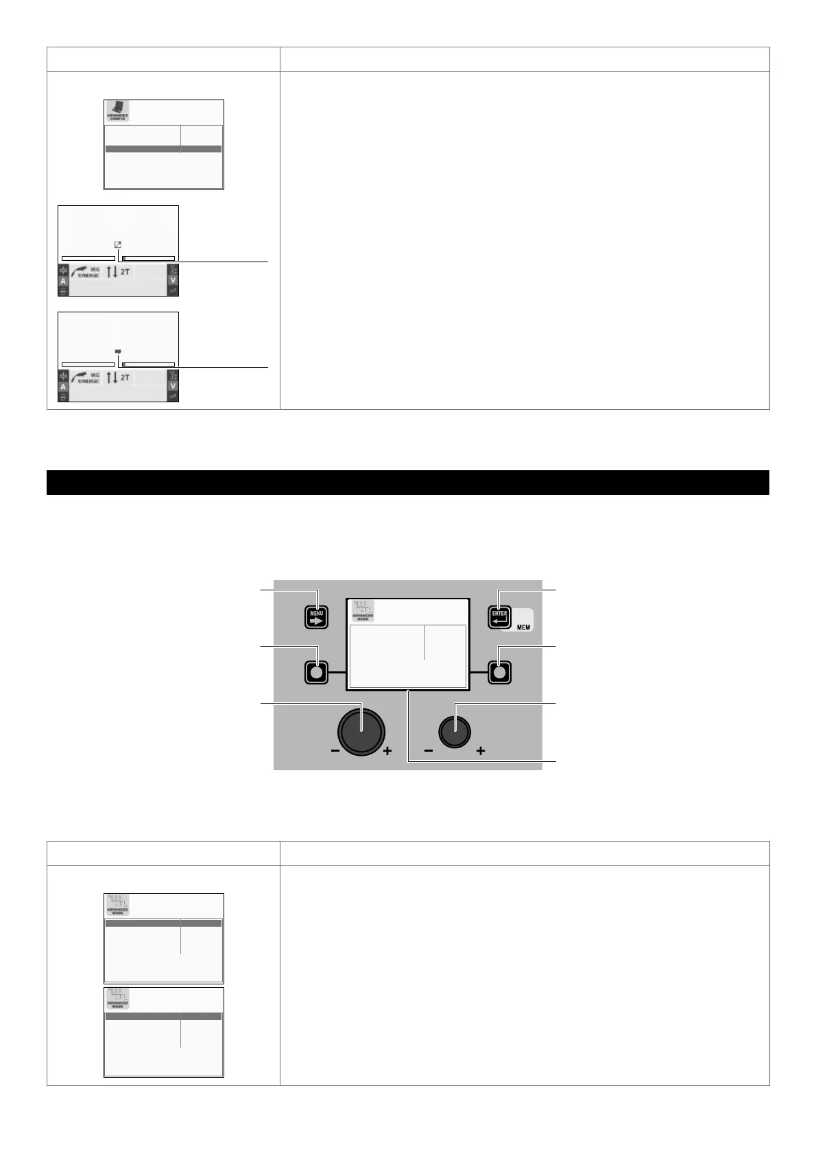 Within the ADVANCED MODE Menu it is possible, by rotating the ENCODER KNOB - SX, to choose the advanced welding mode re-