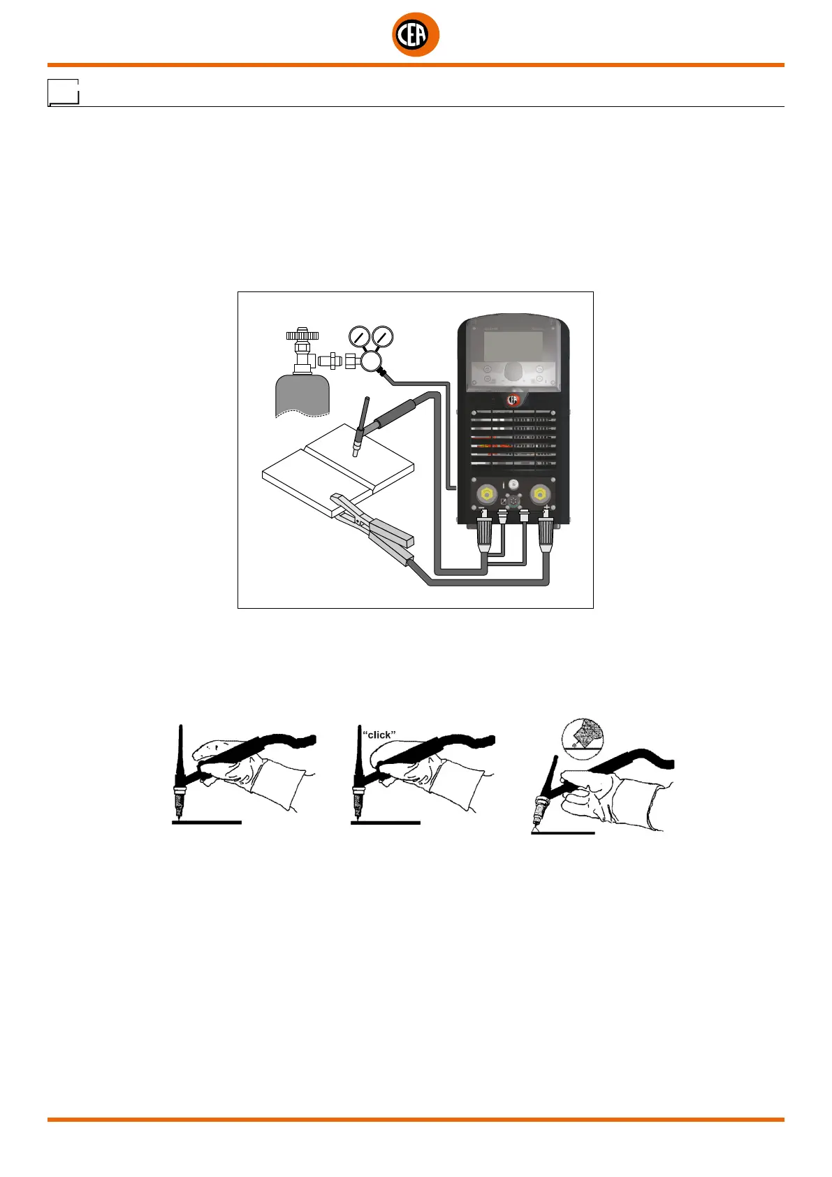 top of the piece to be welded, keeping contact between the point of the electrode and the piece to be welded (Fig. D-1).
