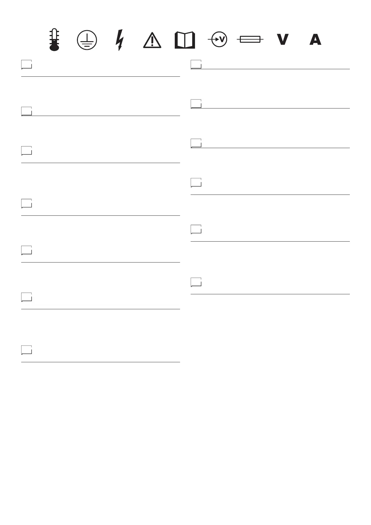 •1 Termostat •2 Skyddsjord •3 Farlig spänning •4 Observera! •5 Innan