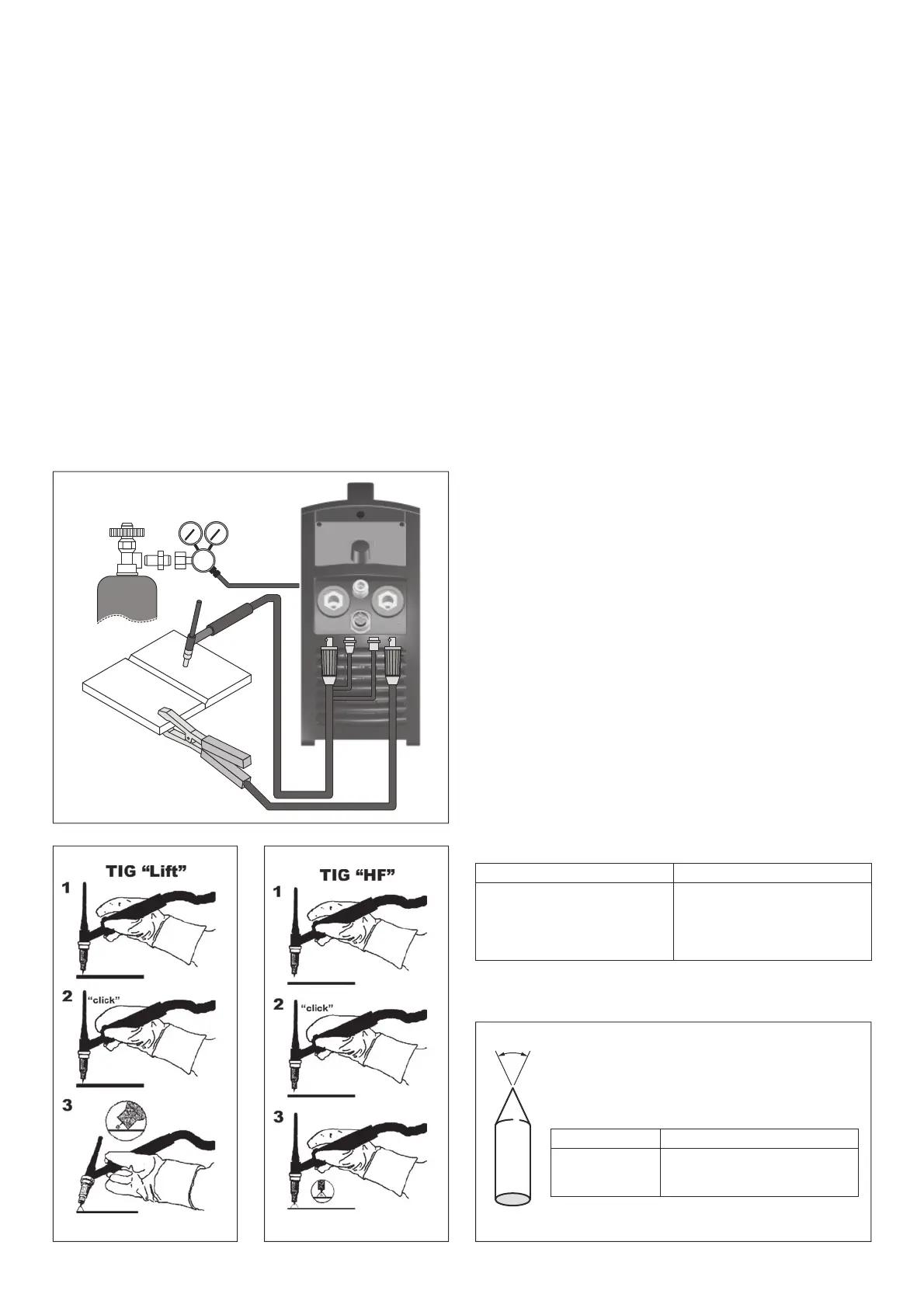 7a) The “Lift” function strikes the arc when the TIG torch electrode
